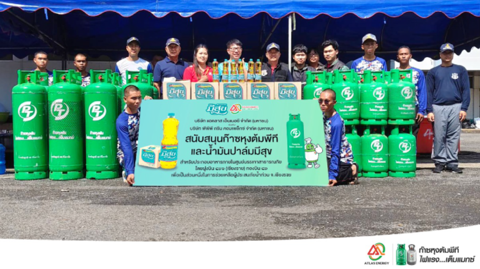 บริษัท แอตลาส เอ็นเนอยี จำกัด (มหาชน) ผู้ค้าก๊าซปิโตรเลียมเหลว ตามมาตรา 7 ภายใต้แบรนด์ "ก๊าซหุงต้มพีที" ร่วมกับ บริษัท พีพีพี กรีน คอมเพล็กซ์ จำกัด (มหาชน) ผู้ผลิตและจำหน่าย "น้ำมันปาล์มมีสุข" ร่วมสนับสนุนก๊าซหุงต้มพีที ขนาด 48 กิโลกรัม จำนวน 10 ถัง และ ขนาด 15 กิโลกรัม จำนวน 15 ถัง พร้อมน้ำมันปาล์มมีสุข จำนวน 20 ลัง เพื่อใช้ประกอบอาหาร ณ ศูนย์บรรเทาสาธารณภัยและศูนย์รับบริจาค ฝูงบิน ๔๑๖ (เชียงราย) กองบิน ๔๑ จังหวัดเชียงราย เพื่อช่วยเหลือประชาชนที่ได้รับผลกระทบจากอุทกภัยในพื้นที่ต่างๆ เมื่อวันที่ 15 กันยายน 2567 ที่ผ่านมา