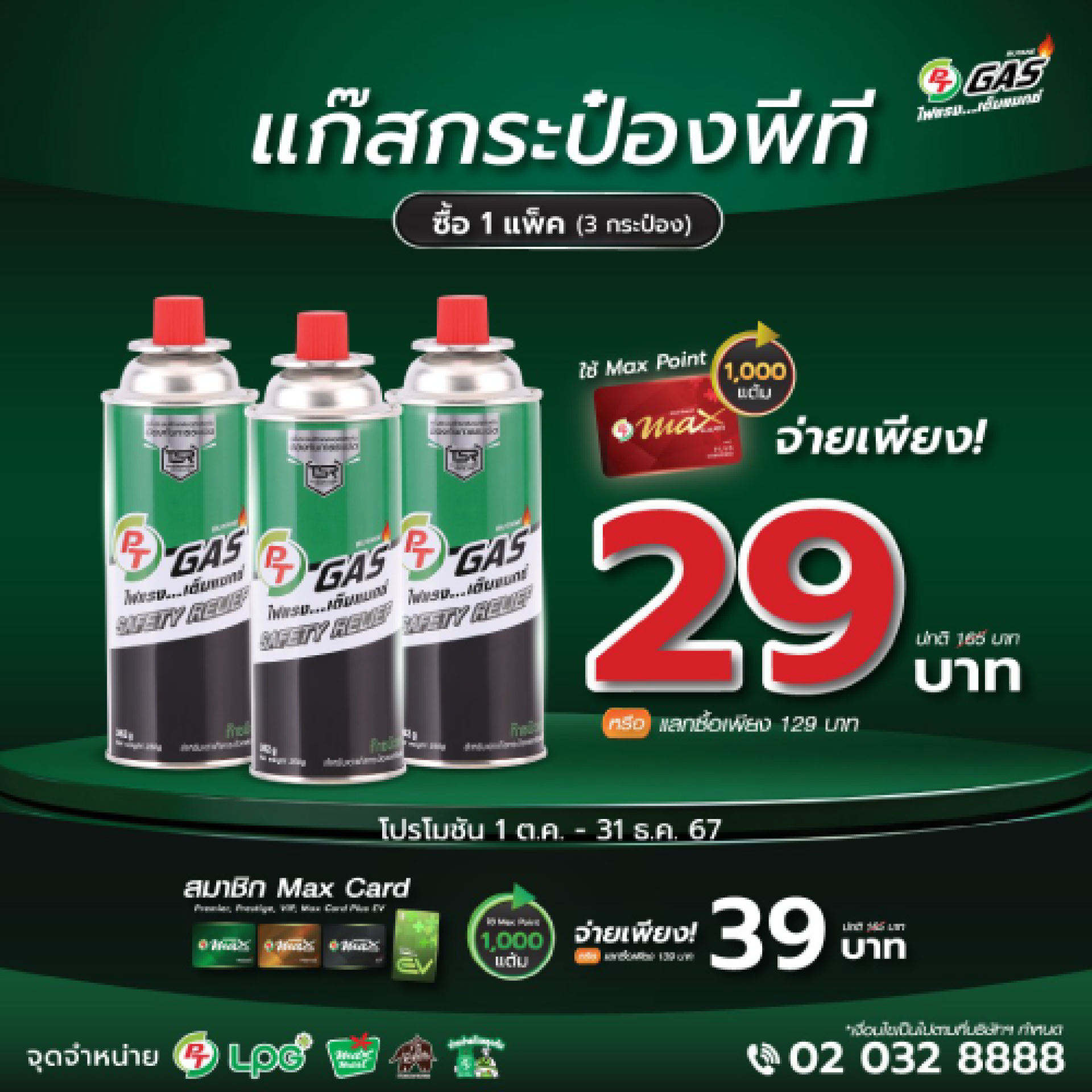 #แก๊สกระป๋องพีที #แก๊สกระป๋อง #โปรโมชัน #PT #PTstation #Punthaicoffee #กาแฟพันธุ์ไทย #Maxmart #แมกซ์มาร์ท
