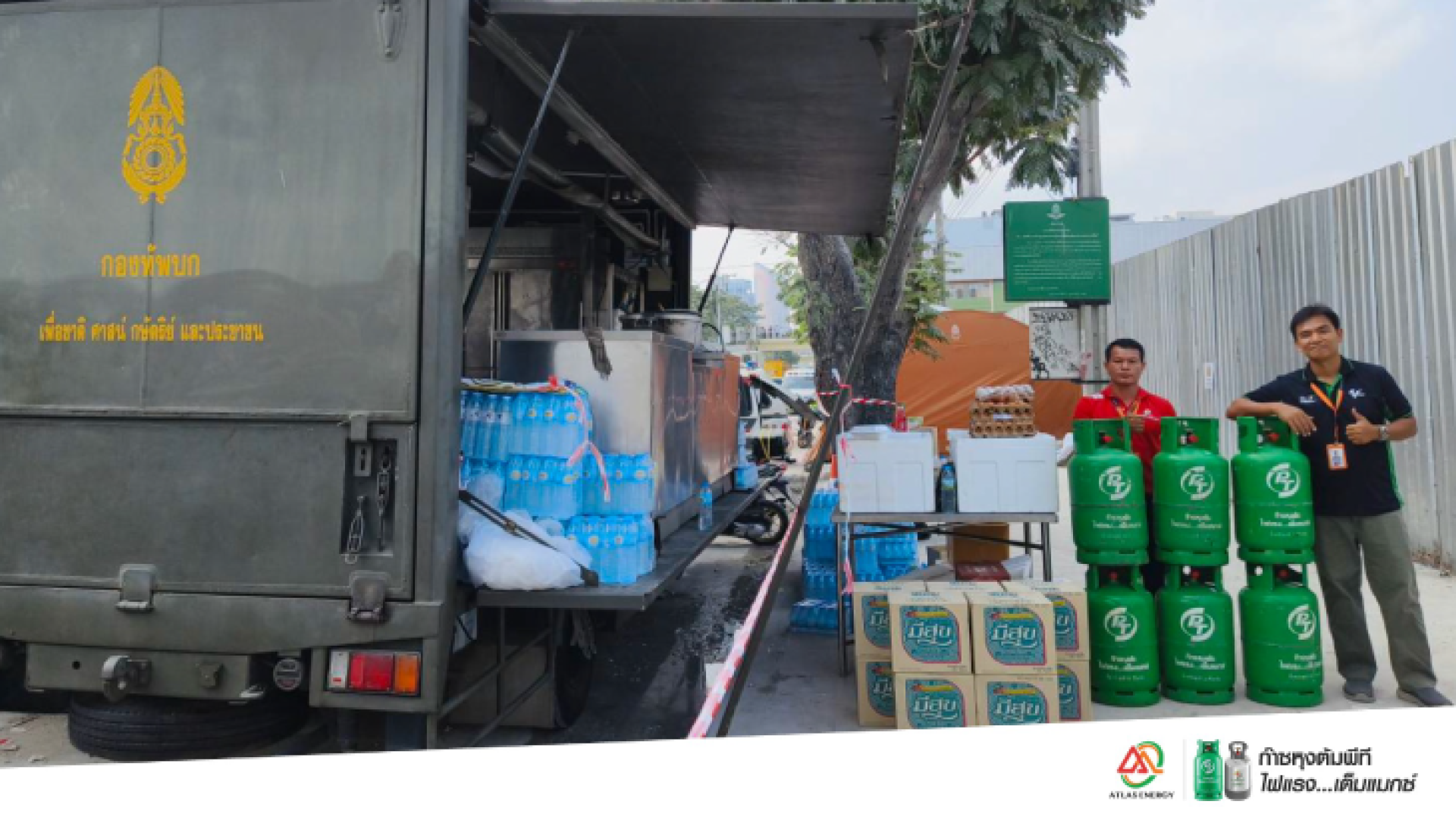 แอตลลาส เอ็นเนอยี สนับสนุนก๊าซหุงต้มพีที สำหรับใช้ประกอบอาหารในโรงครัวพระราชทาน กองทัพบก เพื่อช่วยเหลือเจ้าหน้าที่กู้ภัยในปฏิบัติการค้นหาผู้รอดชีวิตจากเหตุแผ่นดินไหว